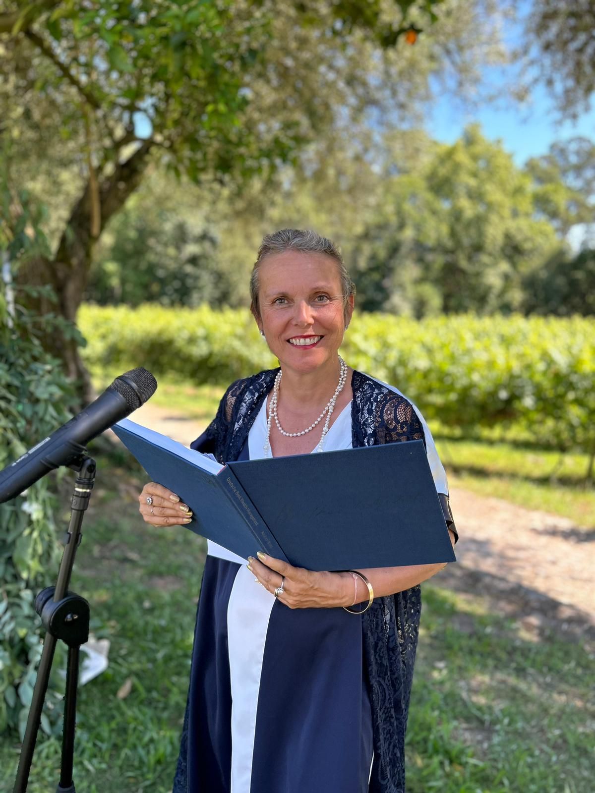Com uma presença calma, enraizada e atenta, Regina Frank transforma histórias pessoais em cerimónias cuidadosamente compostas. Com formação artística e experiência em performance, combina palavras, ritmo, silêncio e nuance para criar um conjunto harmonioso — estabelecendo desde o início um espaço de confiança e serenidade para o casal e todos os presentes.